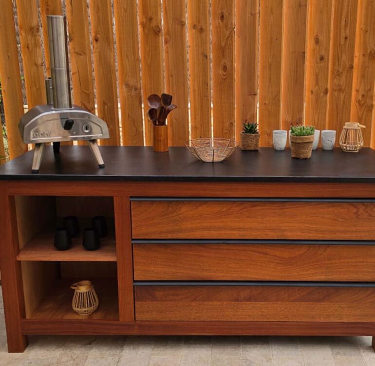 Nous avons commandé une cuisine d’été en bois exotique avec plan de travail en granit. La qualité des finitions est remarquable et l’ensemble s’intègre parfaitement à notre terrasse. Produit solide et très bien conçu.